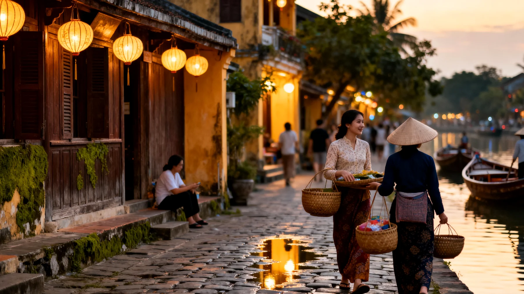 Am besten erkundet man die Altstadt zu Fuß in den frühen Morgenstunden, wenn das weiche Licht die alten Mauern in warme Töne taucht und die Händler ihre Waren aufbauen. Der Thu Bon-Fluss, der sich durch die Stadt schlängelt, bietet wunderbare Ausblicke und lädt zu entspannten Momenten am Ufer ein. Gegen Abend verwandelt sich die Szenerie vollends: Tausende Lampions tauchen die Gassen in ein märchenhaftes Licht, das Fotografen und Romantiker gleichermaßen verzückt.