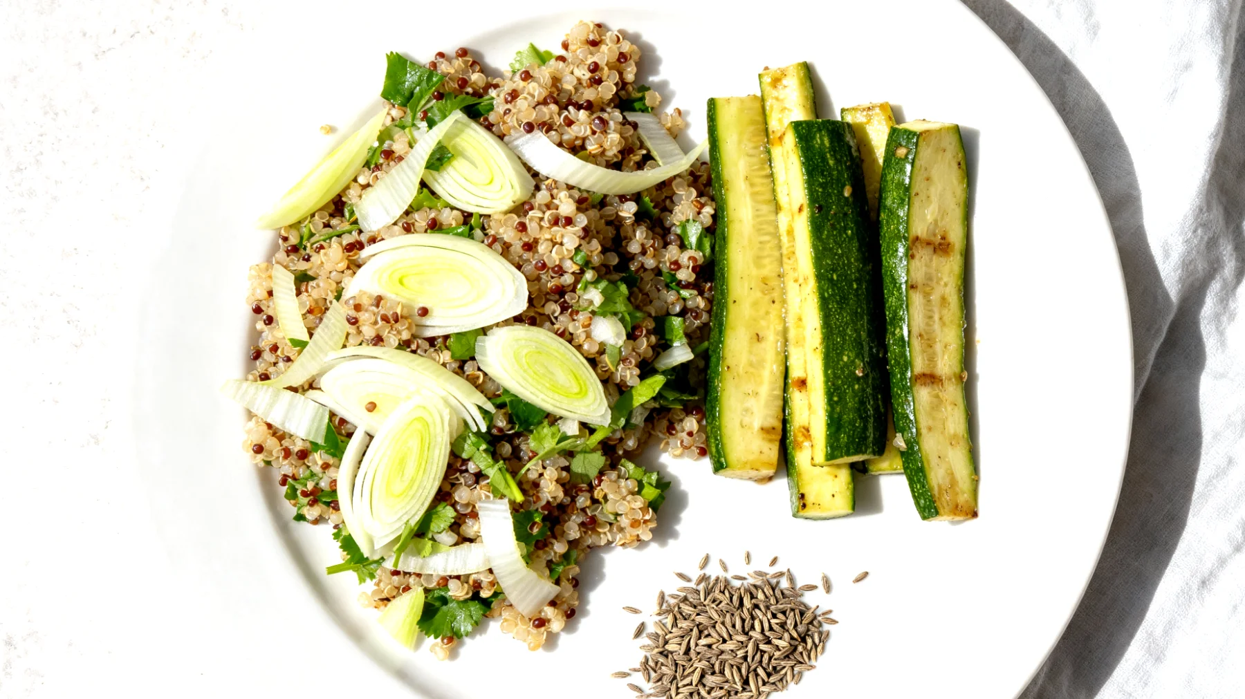 Wer kennt das nicht: Nach einem langen Arbeitstag sitzt man am Schreibtisch oder in Meetings, der Bauch drückt, Blähungen machen sich bemerkbar und an konzentriertes Arbeiten ist kaum noch zu denken. Gerade schwere Mahlzeiten am Abend verschlimmern diese Beschwerden oft noch. Genau hier setzt der Fenchel-Quinoa-Salat mit gedünstetem Zucchini und Kümmel an – ein Gericht, das durch seine sorgfältig ausgewählten Zutaten Menschen mit empfindlichem Verdauungssystem unterstützen kann.